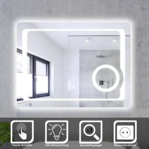 €139.95Badezimmer LED Spiegel Badspiegel mit Beleuchtung Kosmetikspiegel Touchschalter 80x60cm GTBM009