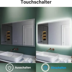 INFO ZU DIESEM ARTIKEL LED-Beleuchtung: Energiesparende und effiziente LED-Technologie beleuchtet Ihr Badezimmer perfekt und ist nahezu wartungsfrei. 2-in-1 Touchschalter: Zum Einstellen der LED-Beleuchtung, mit Uhr- und Temperaturanzeige. Durch langes Berühren können Uhrzeit und Temperatur eingestellt werden. Schutzklasse: IP44 – Rahmen und Rückseite sind zusätzlich staubgeschützt. Jeder Spiegel wird fertig montiert geliefert, inkl. Anleitung und Montageset….