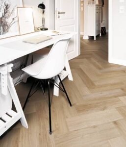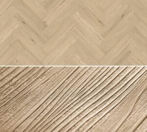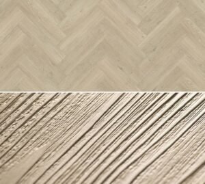Die Fischgrät-Verlegung ist eine klassische Variante aus dem Parkettbereich, um Räumen eine elegante Anmutung zu verleihen. Wir bieten Ihnen zehn Dekore im Sondermaß 610×102 mm an, die diese Verlegeart einfach realisierbar machen. Die rundum gefasten Elemente bieten aber auch weitere Möglichkeiten für eine ansprechende und individuelle Innenarchitektur mit Designbodenbelag.