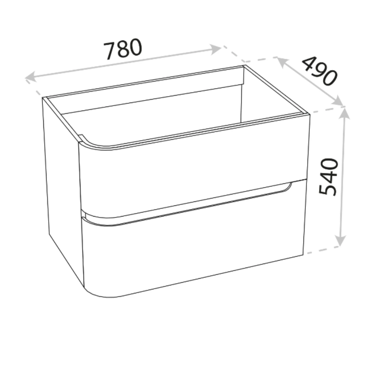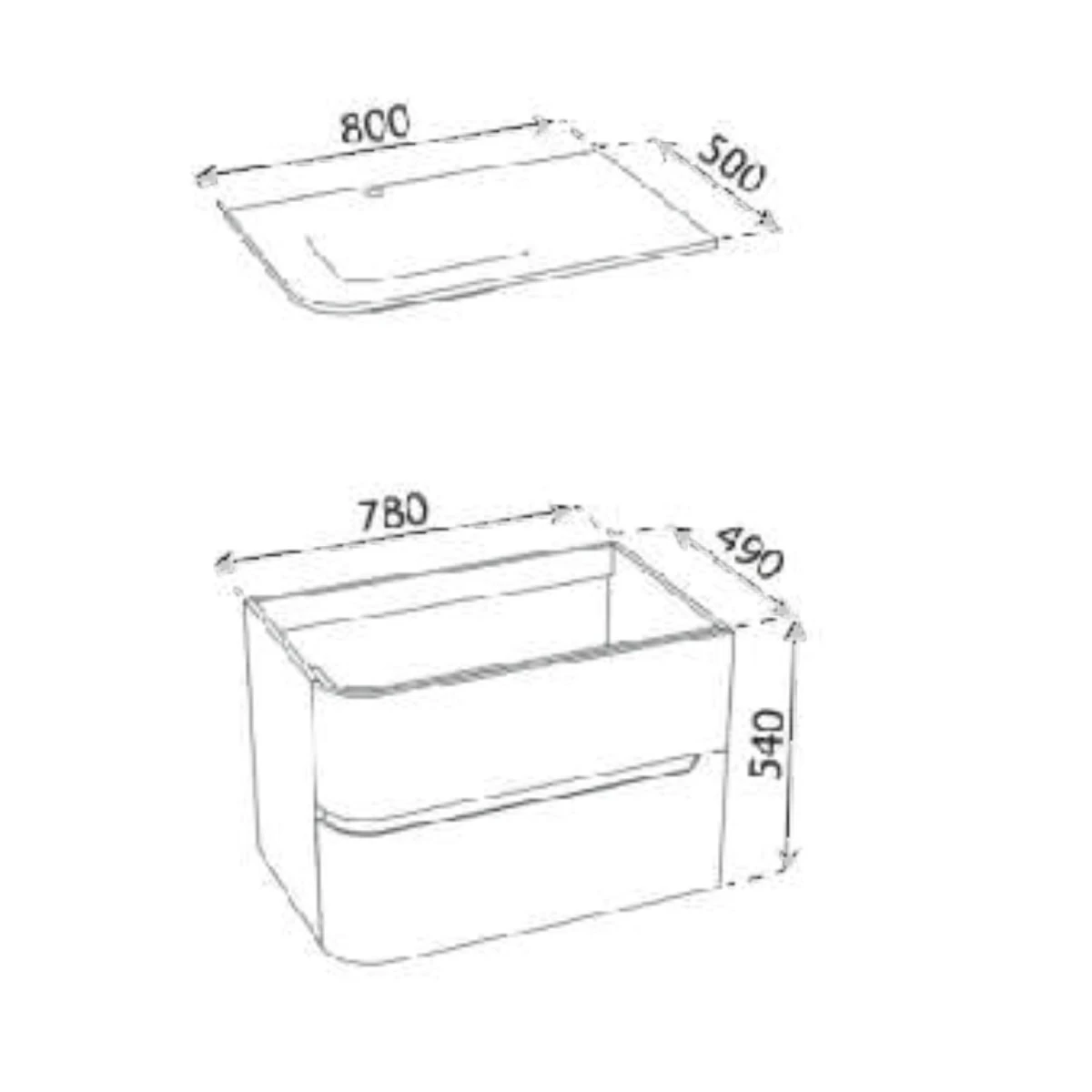 Abmessungen (L×B×H): 780 × 490 × 540 mm (Waschtischunterschrank); 800 × 500 mm (Einbauwaschtisch)