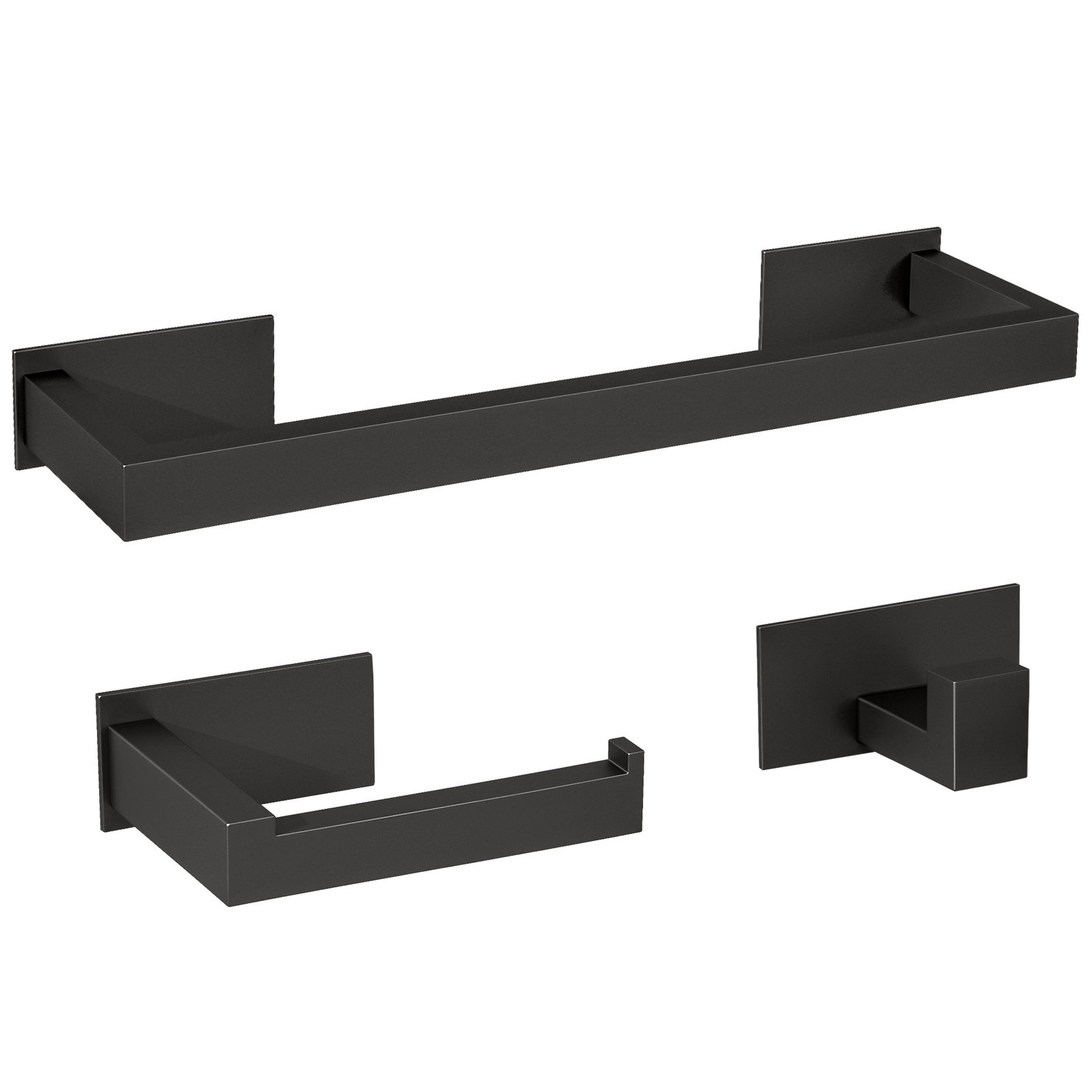 Accesorios de baño adhesivos pegados sin taladro negro mate cuadrados Toallero 40cm+ Percha+ Portarollos