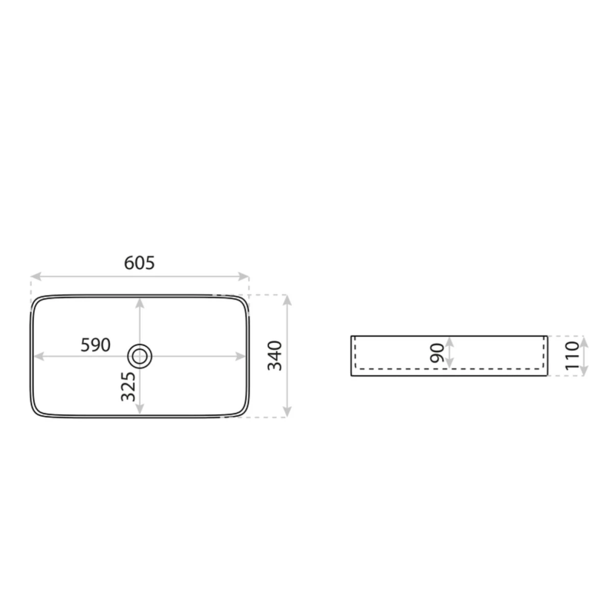 Ausführung: rechteckiges Aufsatzwaschbecken | dünner Rand | ohne Hahnloch | ohne Überlauf | Ablaufloch, mittig