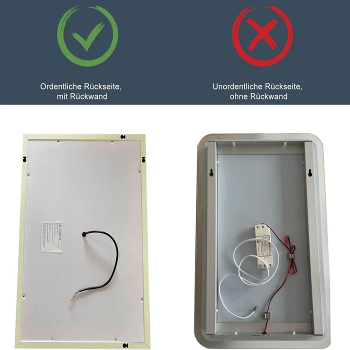 - Stromanschluss integriert: 3-adriges Kabel befindet sich hinter dem Spiegel.