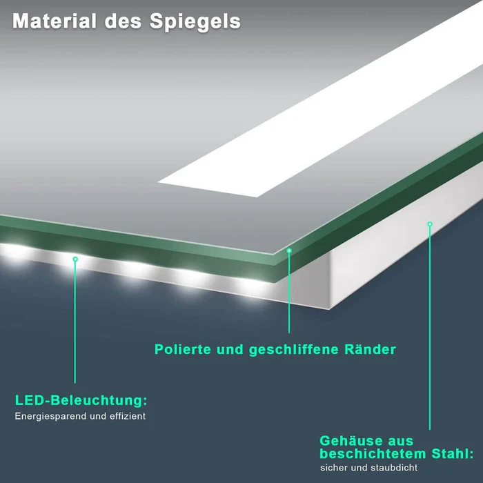 - Energiesparende LED-Beleuchtung: Kaltweißes Licht (ca. 6400K) für perfekte Ausleuchtung des Badezimmers.
