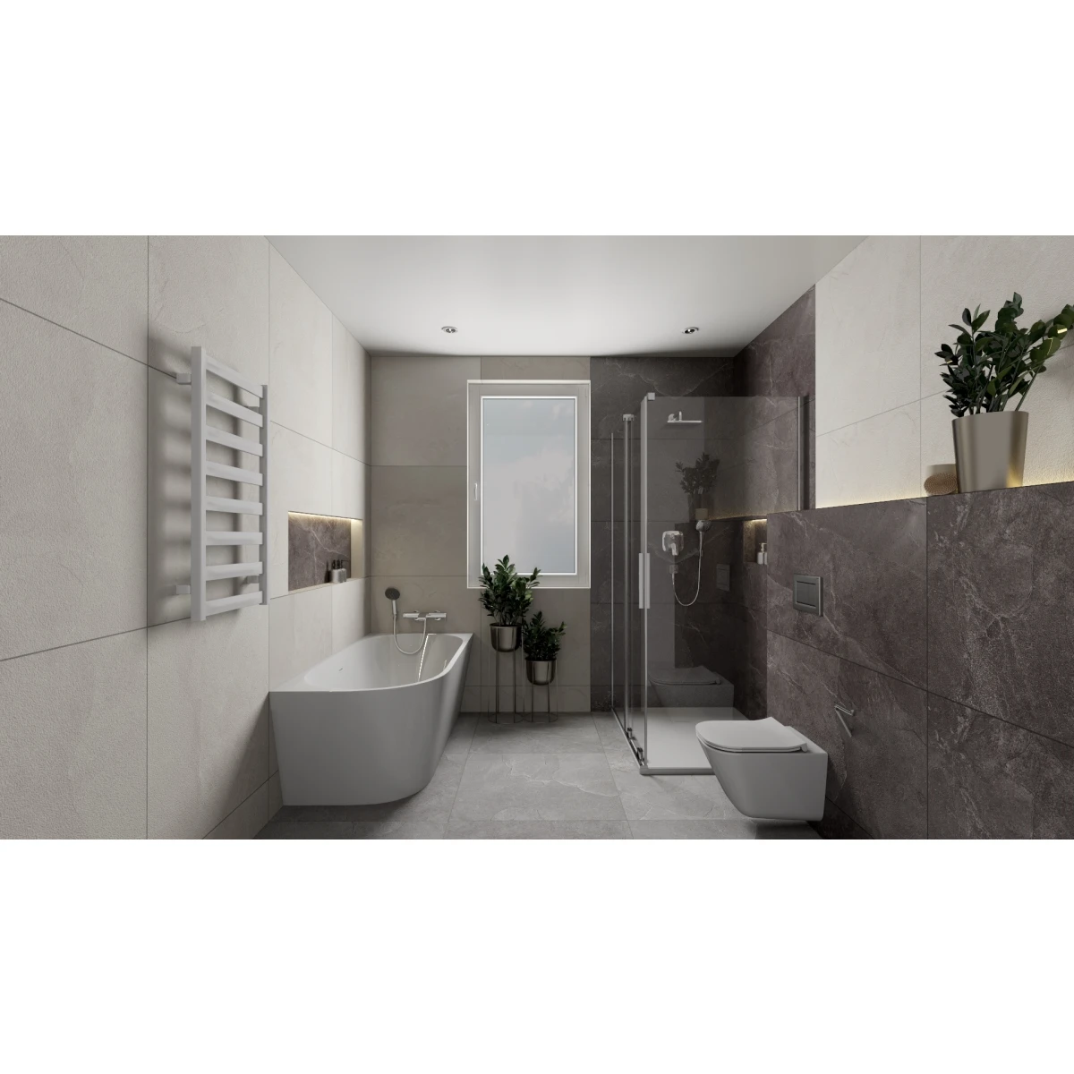 Der HERMES WHITE Mischheizkörper ist ein vielseitiger Handtuchheizkörper mit elegantem, mattem Weiß und Seitenanschluss.