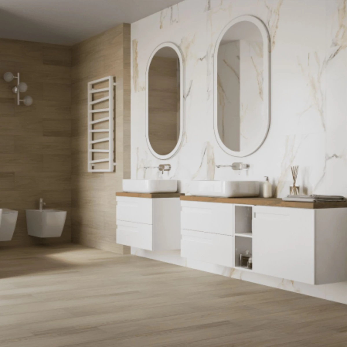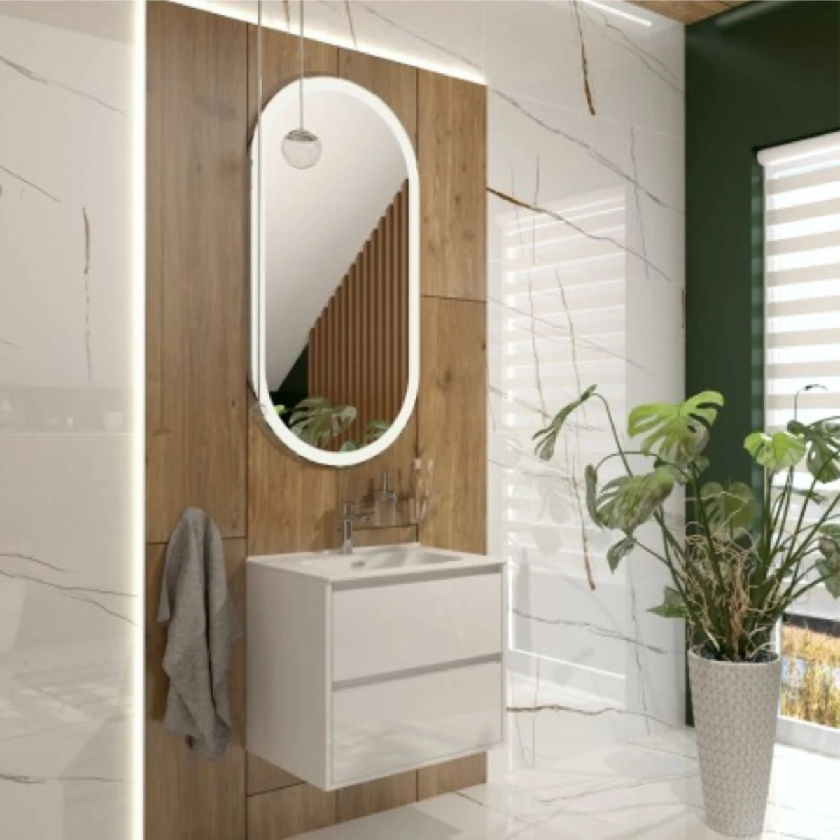 Ellipsenförmiger LED-Badspiegel mit geschliffenen Kanten bietet alles, was ein modernes Badezimmer braucht.