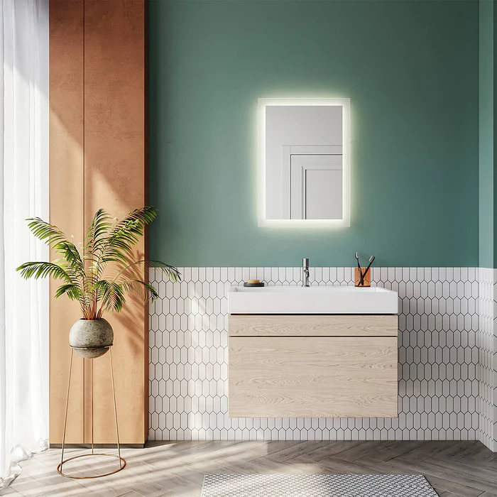Badspiegel mit Beleuchtung 50×70 cm, Warmweiß LED Badspiegel, Badezimmerspiegel mit Beleuchtung, Wandspiegel für Badezimmer Vertikal/Horizontal Montage IP44 wasserdicht Wandschalter