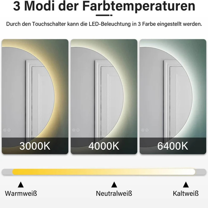 Badspiegel mit Beleuchtung Rund 3 Lichtfarbe einstellbar Beschlagfrei Runder Wandspiegel mit Touch für Badezimmer Lichtspiegel Warmweißes/Kaltweiße/Neutralweiß