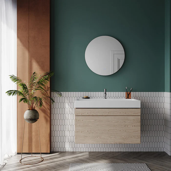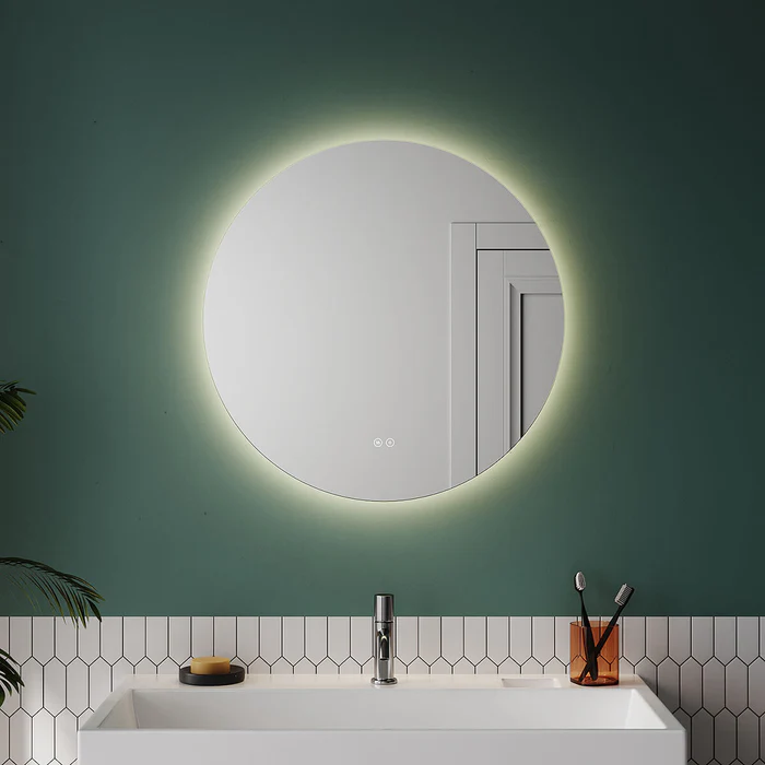 • Design & LED-Beleuchtung: Moderner Badezimmerspiegel mit angesagter runder Optik und innovativem Beleuchtungskonzept.