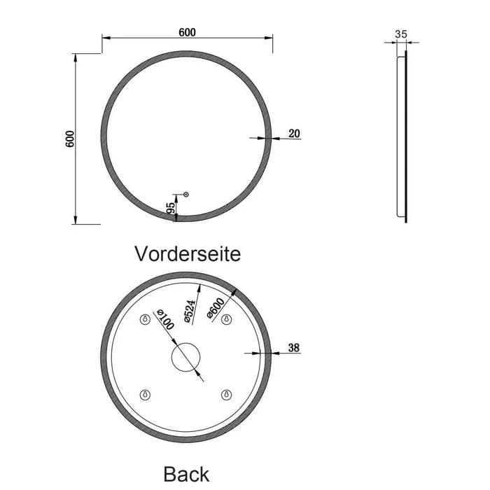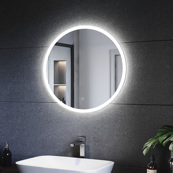 Badspiegel mit Beleuchtung Rund 60 cm Beschlagfrei Runder Badspiegel mit LED-Beleuchtung LED Badspiegel Rund mit Touch Schalter Wandspiegel Kaltweiß 6400K