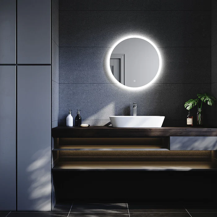 - Moderner runder Badspiegel mit LED-Beleuchtung, perfekt passend für jedes Badezimmer.