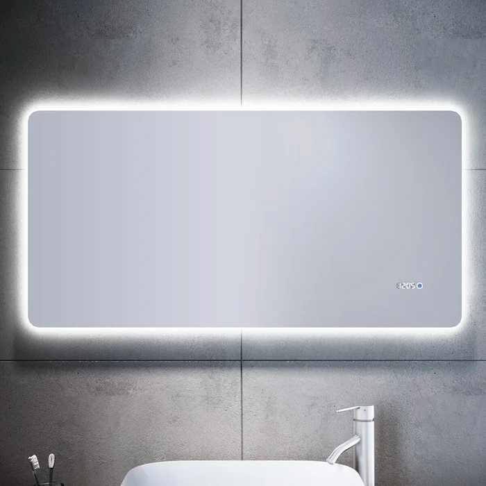 Badspiegel mit Beleuchtung und Uhr Temperaturanzeige, LED Badspiegel mit Touchschalter 120×60 cm