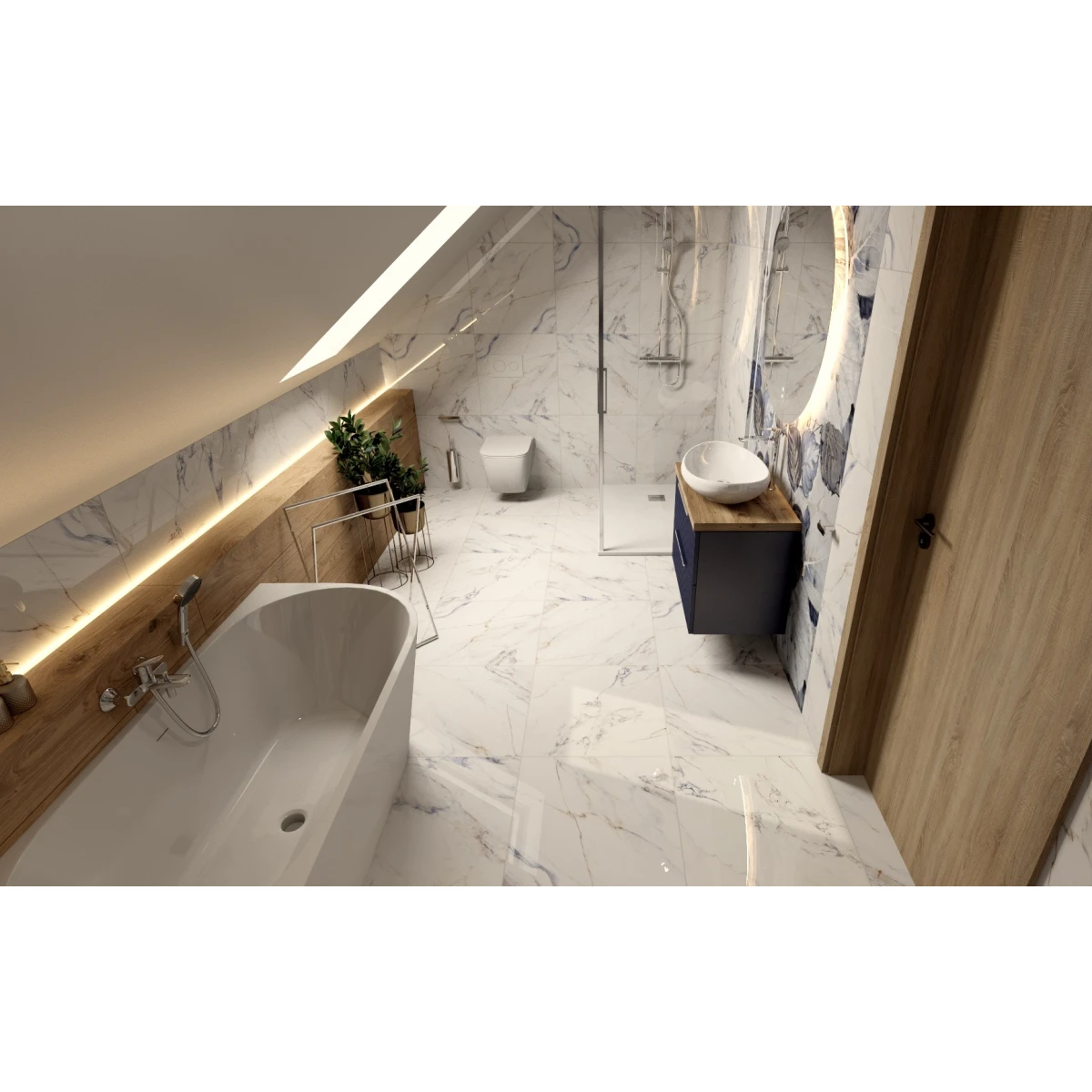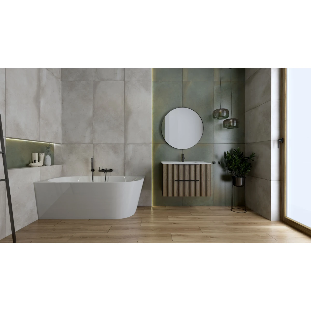 Die komfortable Badewanne CALDERA 1600 R, welche die Platzvorteile einer Eck-Einbaulösung bietet, ist aus hochwertigem, verstärktem Acryl in strahlendem Weiß gefertigt. Außerdem ist die Ablaufgarnitur mit einem praktischen Klick-Klack-System ausgestattet.