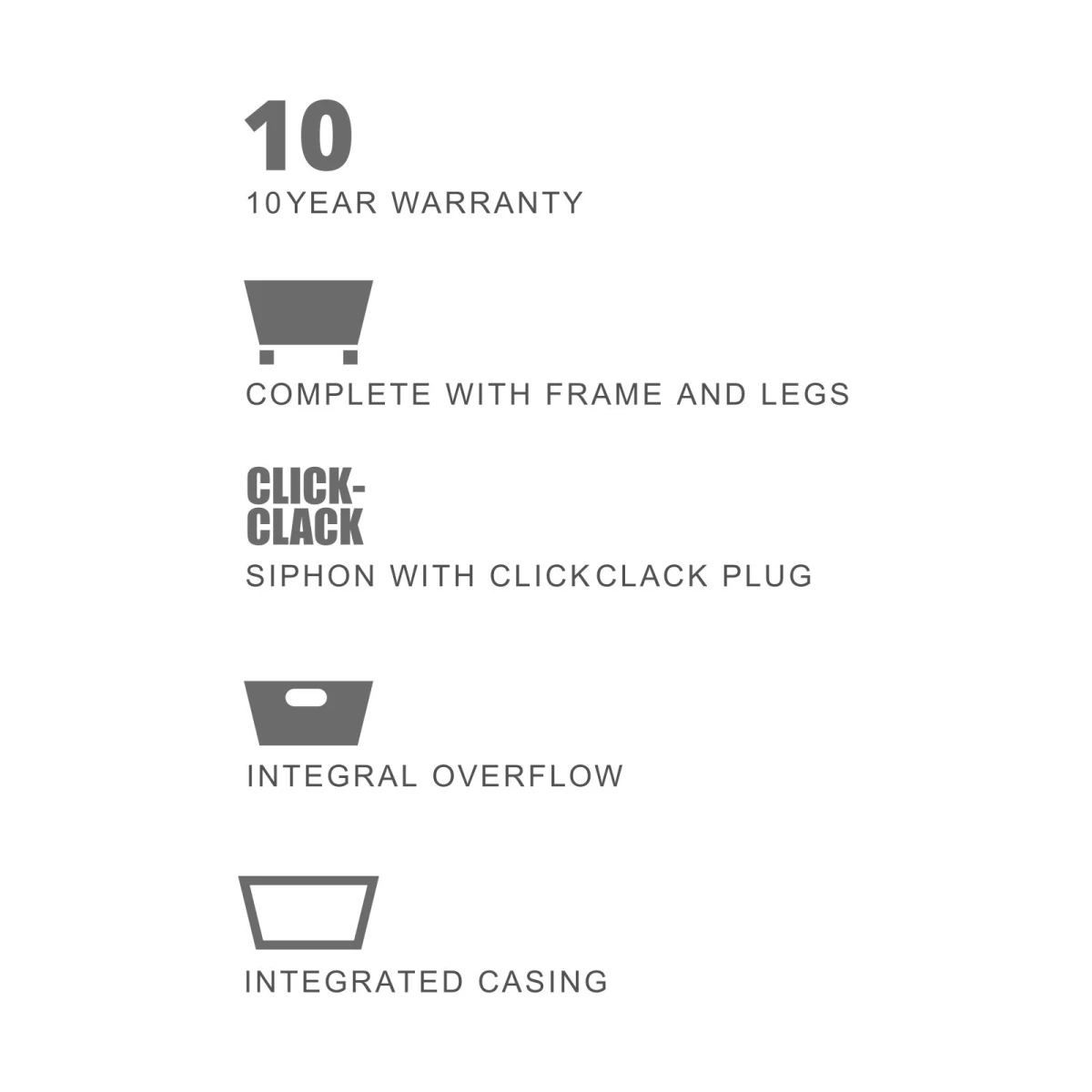Lieferumfang: 1 × Badewanne; 1 × Siphon; Ab- und Überlaufsystem vormontiert; höhenverstellbare Füße, integriert