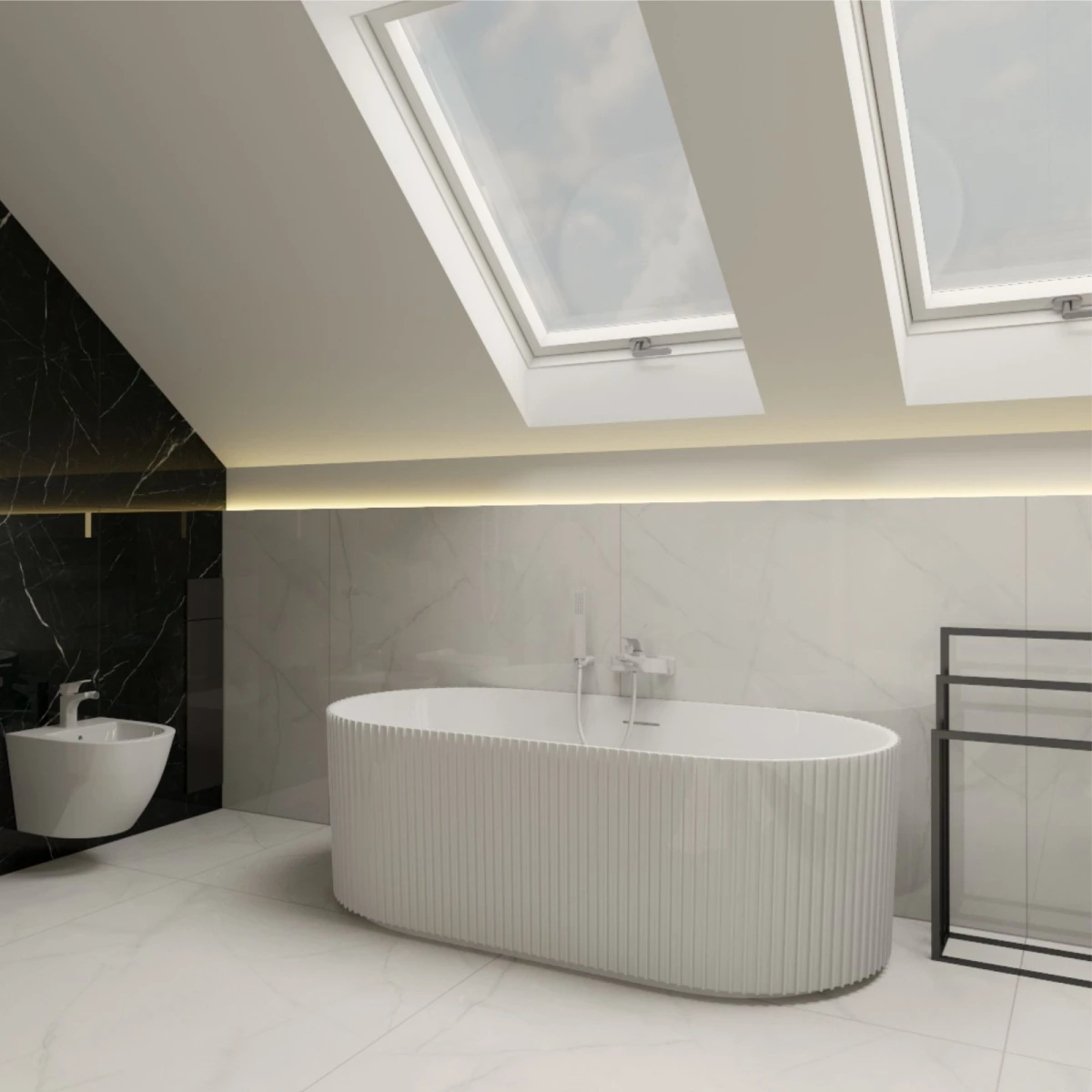 Die auffällige, geriffelte Außenstruktur lässt die Badewanne OKLAHOMA sehr hochwertig wirken und verleiht, in Kombination mit dem trendigen Design, jedem Badezimmer ein luxuriöses Ambiente.