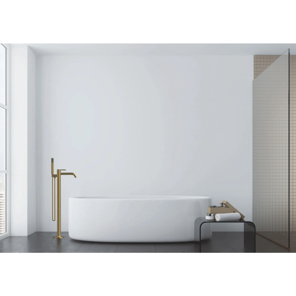 Be the first to review “Freistehender Badewannenhahn ORION mit Handbrause (Höhe: 955 mm), 1 Hebel, gebürstet, gold”