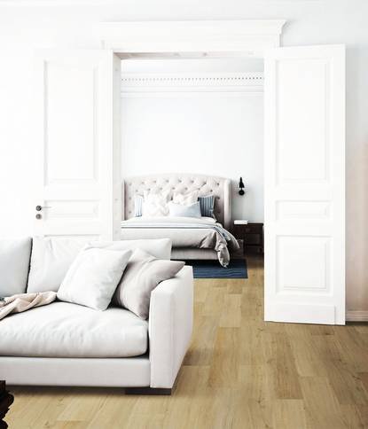 Die Designbodenbeläge der floors@work/55 Kollektion mit 0,55 mm Nutzschicht sind für hohe Beanspruchung im Objektbereich und höchste Beanspruchung im Wohnbereich prädestiniert. 86 Holz- und Steindekore bieten eine nahezu unbegrenzte Gestaltungsauswahl für stark frequentierte Flächen.