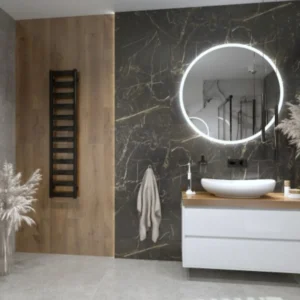 • Design: Querformat mit zwei eckigen Bedienfeldern, dezent im Badezimmer integrierbar.